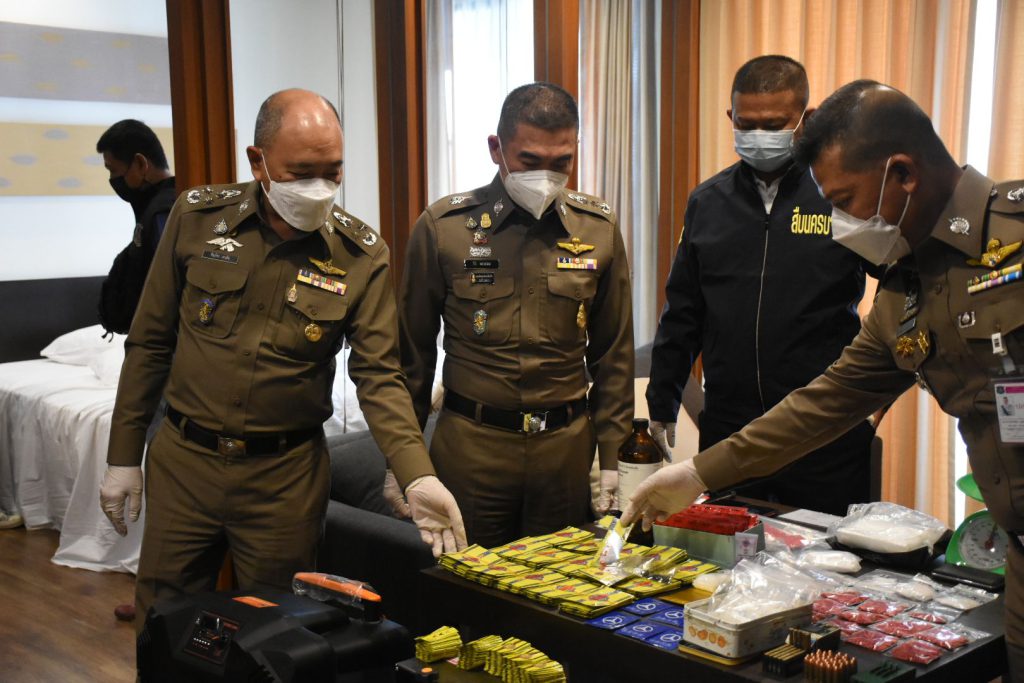 พล.ต.อ.ดำรงศักดิ์ กิตติประภัสร์ ผบ.ตร.สั่งการให้ พล.ต.อ.ชินภัทร สารสิน รอง ผบ.ตร./ผอ.ศอ.ปส.ตร. , พล.ต.ท.ประจวบ วงศ์สุข ผู้ช่วย ผบ.ตร./รอง ผอ.ศอ.ปส.ตร. , พล.ต.ท.ธิติ แสงสว่าง ผบช.น , พล.ต.ท.สรายุทธ สงวนโภคัย ผบช.ปส. ร่วมกันสืบสวนจับกุม 2 ผู้ต้องหาชาวสิงคโปร์ อายุ 34 ปี ชาวสิงคโปร์ พร้อมด้วยของกลางยาเสพติดจำนวนมาก รวมถึงอาวุธปืนไทยประดิษฐ์พร้อมกระสุนและของกลางอื่นๆ อีกหลายรายการ