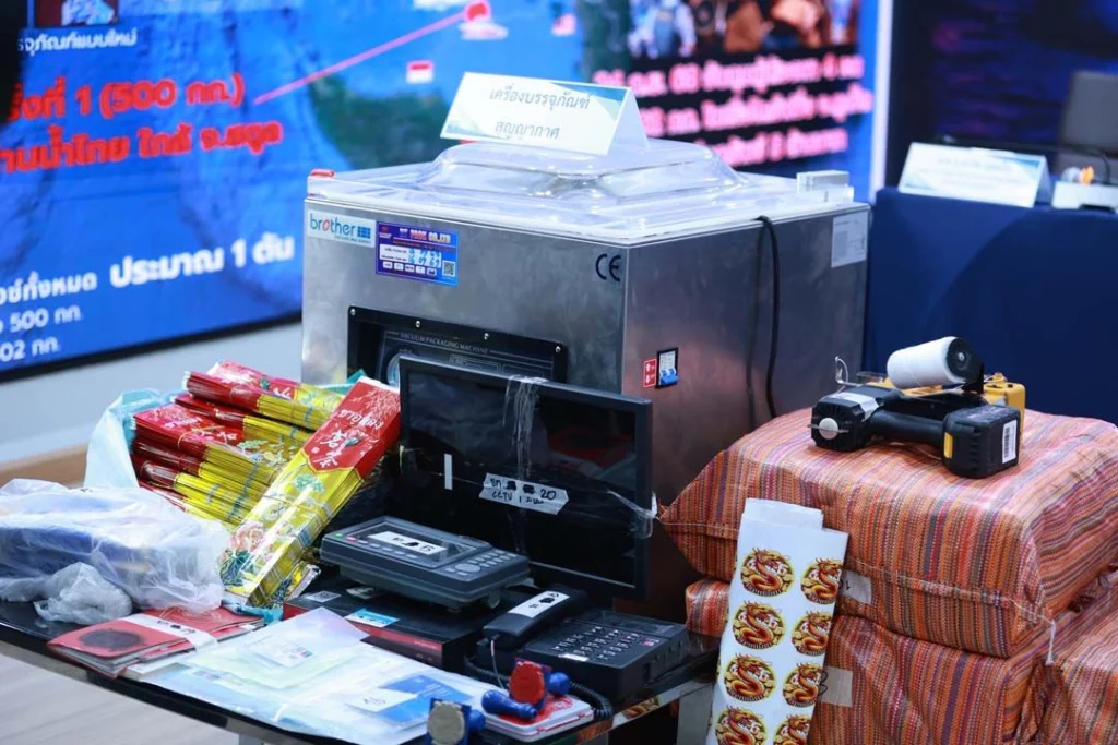 ด้านนายปฤณ เมฆานันท์ ผู้อำนวยการสำนักปราบปรามยาเสพติด ป.ป.ส. กล่าวว่า การจับกุมนี้สืบเนื่องจากช่วงเดือนกันยายน 2568 กรมข่าวทหารเรือ(ขว.ทร.) สืบสวนได้ว่า เครือข่ายยาเสพติดเตรียมลำเลียงยาเสพติดปริมาณมากไปยังประเทศที่สาม จึงประสานการข่าวมายัง ป.ป.ส. สนธิกำลังกับกองทัพเรือทัพเรือภาคที่3 สืบสวนติดตาม กระทั่งพบเรือสัญชาติไทยต้องสงสัย แล่นมาจาก จ.ระนอง และจอดอยู่ในทะเลอันดามัน บริเวณท่าเรืออ่าวฉลอง จ.ภูเก็ต มีลักษณะผิดปกติจากเรือทั่วไป และบุคคลในเรือมีท่าทีพิรุธ ชุดปฏิบัติการจึงนำกำลังเข้าตรวจค้นจับกุมเรือลำดังกล่าว พบเครื่องบรรจุภัณฑ์สุญญากาศ จักรเย็บปากกระสอบแบบมือถือ และถุงชาเปล่าจำนวนมาก