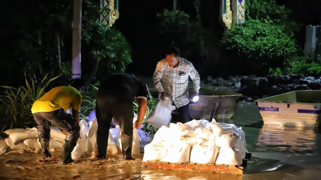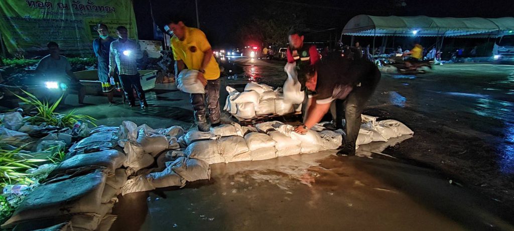 เมื่อเวลา 22.00 น.วันที่ 5 ก.ย. 2565 ที่วัดถั่วทอง ตำบลบ้านปทุม อำเภอสามโคก จังหวัดปทุมธานี นายชาญ พวงเพ็ชร์ อดีตนายกองค์การบริหารส่วนจังหวัดปทุมธานี พร้อมน.ส.ชิดชนก พวงเพ็ชร์ บุตรสาวได้นำข้ามต้มหมูหม้อใหญ่ กว่า 150 ชาม นำมาให้เจ้าหน้าที่อบต.บ้านปทุม และประชาชน ที่ช่วยกันกรอกกระสอบทราย และเร่งกู้คันกั้นน้ำ วัดถั่วทอง หลังพังทลายยาวกว่า 30 เมตรเมื่อเวลา20.00 ที่ผ่านมา ได้เกิดการพังทลายของกระสอบทรายที่เป็นคันกั้นน้ำภายในบริเวณวัดถัวทอง เป็นความยาว กว่า 30 เมตร ทำให้กระแสน้ำเจ้าพระยาไหลทะลักเข้าท่วมบริเวณวัดถั่วทอง