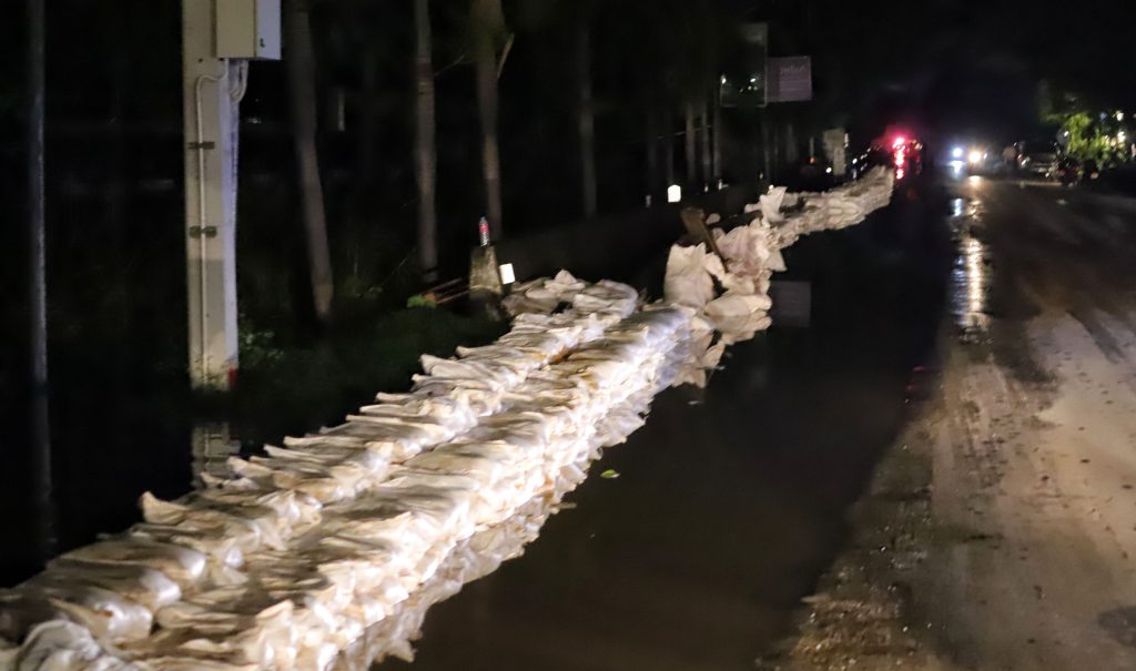 ทั้งนี้ เจ้าหน้าที่ อบต.บ้านปทุม เร่งนำรถแบคโฮ มานำเอาดินมาทำคันกั้นน้ำ เพื่อไม่ให้กระแสน้ำไหลทะลัก ผ่านข้ามถนน มาท่วมบ้านเรือนประชาชน โดยนายชาญ ได้ลงพื้นที่ลุยน้ำไปตรวจสอบตรงจุดที่กระสอบทรายพังด้วยตนเอง พร้อมให้คำแนะนำ ในการจัดการแก้ไขสถานการณ์เป็นการเร่งด่วน แต่เนื่องจากรถแบคโฮทั้ง 2 คันที่นำมาทำผนังกำแพงดิน เพื่อป้องกันน้ำเกิดเสียทั้ง 2 คัน โดยคันแรกสายไฮดรอลิคแตกไม่สามารถใช้งานได้ และอีกคันโซ่แท็กตะขาบรถแบคโฮหลุด เจ้าหน้าที่ เร่งซ่อมแซมอยู่ โดยขณะนี้ได้ใช้กระสอบทรายกั้นน้ำเพื่อไม่ให้กระแสน้ำไหลข้ามถนน เข้ามาท่วม บ้านเรือน และนาข้าวของประชาชน