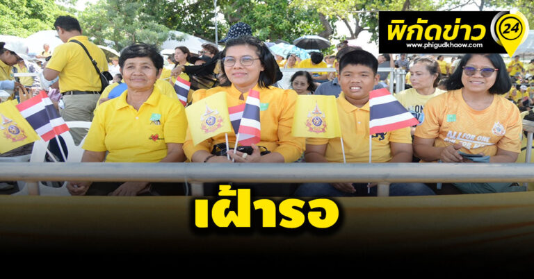 ประชาชนพร้อมใจใส่ชุดสีเหลืองติดสัญลักษณ์ธงชาติไทย มารอเฝ้าฯรับเสด็จ พระบาทสมเด็จพระเจ้าอยู่หัว และสมเด็จพระนางเจ้าฯ พระบรมราชินี